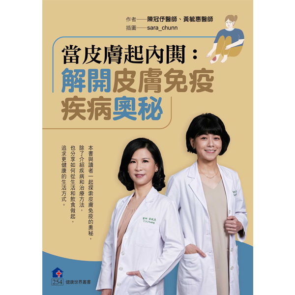 皮膚不只是我們的外在防護層,更是人體最大的「免疫器官」,時刻與外界環境交互作用,保護身體免受病原體的侵襲。然而,當皮膚的免疫系統失衡,各種棘手的皮膚免疫疾病便隨之而來。由皮膚專科醫師黃毓惠與陳冠伃共同撰寫的《當皮膚起內閧:解開皮膚免疫疾病奧秘》,正是一本為公眾揭開這層神秘面紗的科普書籍。本書從科學角度出發,結合臨床經驗,深入淺出解釋皮膚免疫系統如何運作、常見的皮膚免疫疾病如何診斷與治療,以及如何透過調節免疫功能來維持肌膚健康。