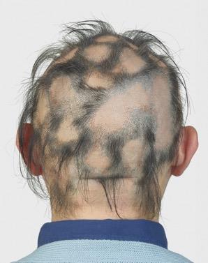 另外,一名中年男性患有「扁平苔癬性禿髮」,屬於慢性發炎造成的疤痕性落髮。結果未經診斷直接接受植髮手術,導致毛囊無法存活,術後疤痕擴大,最終需回皮膚科接受抗發炎治療控制病情。